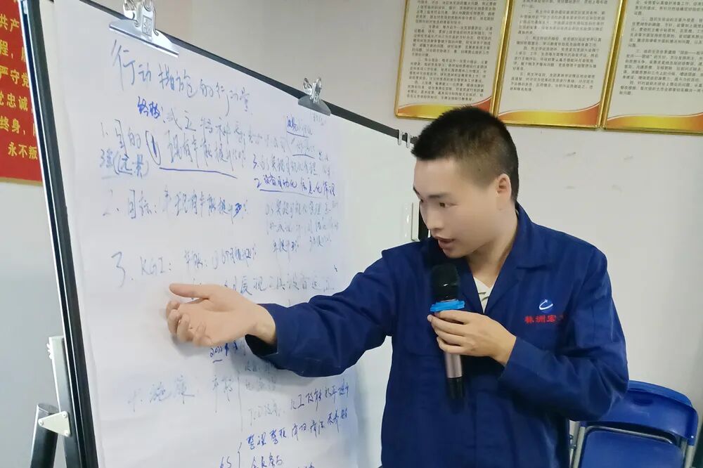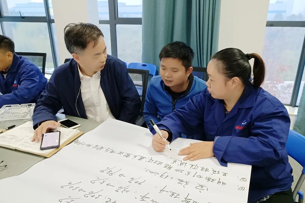 实践课题中,各小组成员热情高涨,十分珍惜这次难得的学习机会。结合公司精益生产项目实际,各小组纷纷各抒己见,集思广益,讨论制定了小组目视管理板,并现场分享给大家,听取多方意见共同探讨项目的可行性。肖老师
