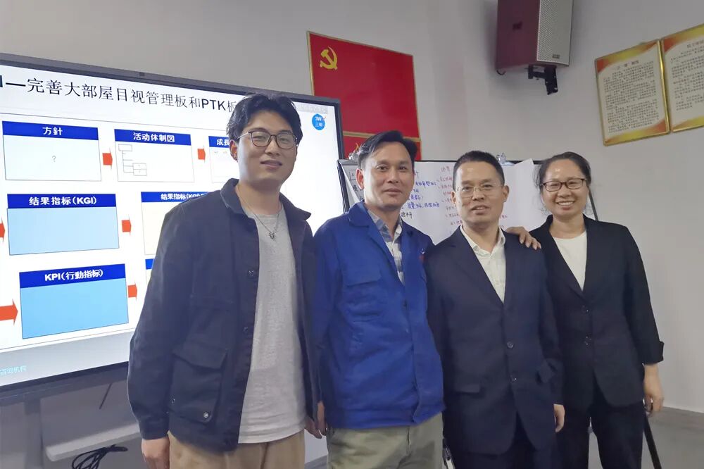 培训会上,高级精益生产专家肖群老师向大家重点讲解了《项目管理》和《活动化职场大部屋》。肖老师说,目视管理板是现场人员根据目视化管理系统,并利用形象直观,色彩适宜的视觉感知信息(表格、图形、数据、颜色等),同时又可以一目了然的发现车间异常状态及问题点的管理方式。其内容包括目的、目标、施策、KPI等。
