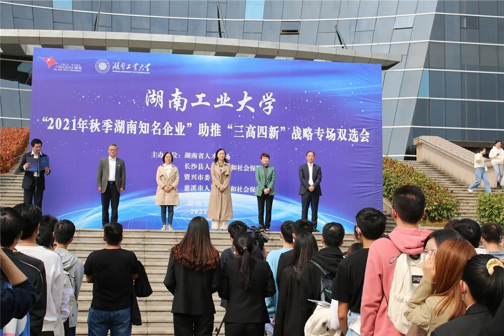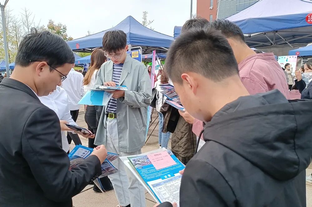 市人社局党组成员、总会计师罗芳(左)莅临展位了解校招情况