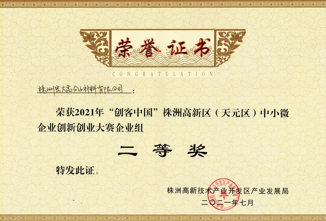 2021年“创客中国”株洲高新区(天元区)中小微企业创新创业大赛在株洲高新区动力谷人力资源产业园圆满收官,我司选送的“高性能含氟改性塑料弹簧蓄能密封件研制及产业化应用”项目获得二等奖。本次大赛由株洲市工业和信息化局、株洲高新区管委会和天元区人民政府指导,株洲高新区产业发展局主办,株洲市中小微企业窗口服务平台承办。
