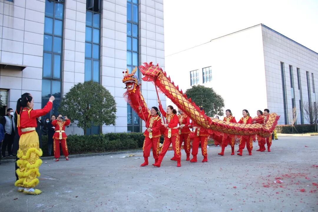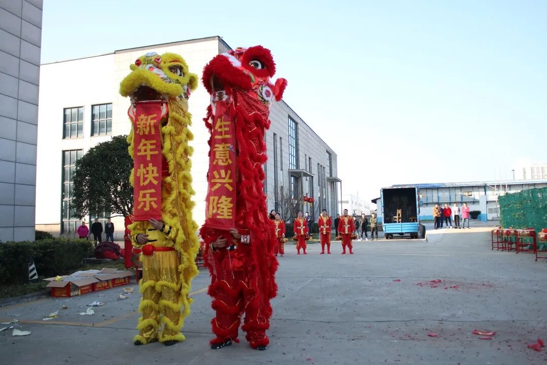 新的征程已拉开序幕,上午8:13大家同时开始倒计时,宣布开工。鸣放礼炮、启鼓敲锣,舞龙舞狮正式闪亮登场!咚咚锵,咚咚锵……公司厂房前锣鼓喧天,热闹非凡,吸引了众员工驻足观看。