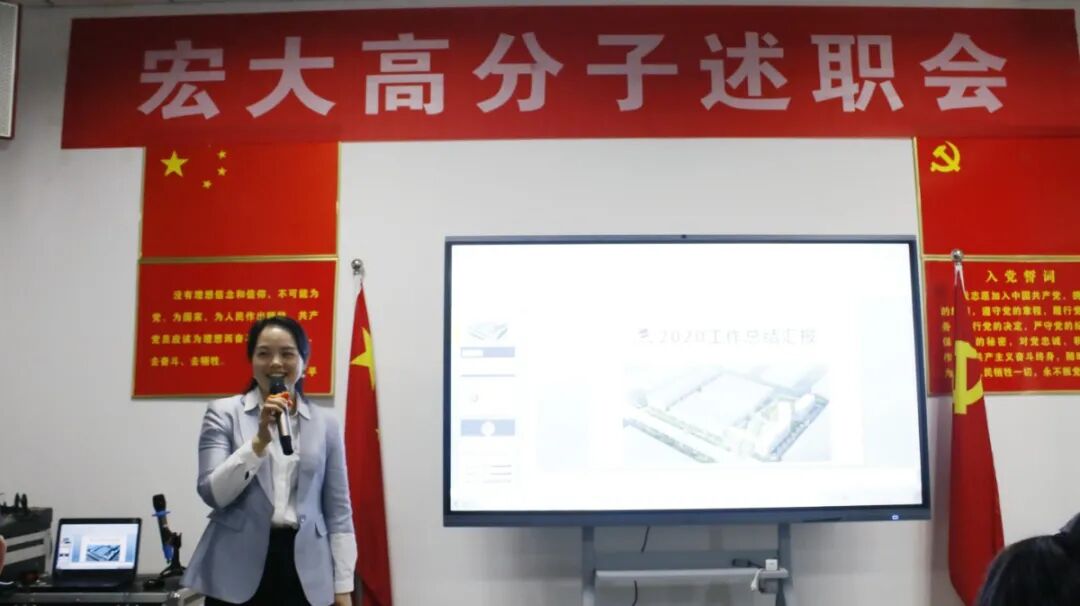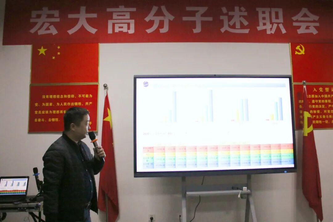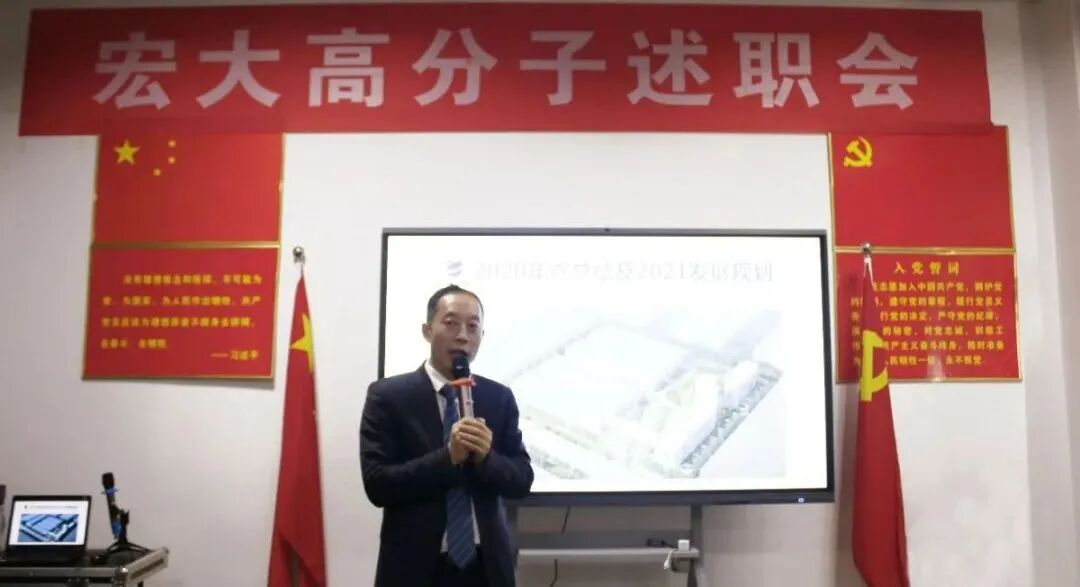 “全体起立、奏国歌”伴随着铿锵有力的国歌,宏大高分子2020年度述职会拉开序幕。