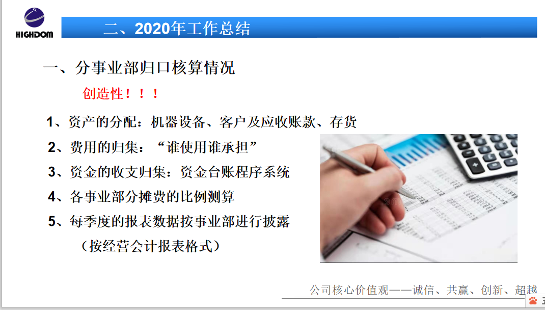 与以往大不同的是,经过半个多月的准备充分,各部负责人结合PPT进行汇报,全面、客观、深入地分析这一年工作的内容及改进。围绕经营业绩、回款情况、阿米巴推进情况、财务管理状况、项目完成情况、党建工作、体系运行情况、采购工作以及董办工作,以及存在的问题进行总结分析。海量的数据、完美的报表呈现,展现出这一年所有宏大人的辛苦付出以及对2021年工作的积极展望。