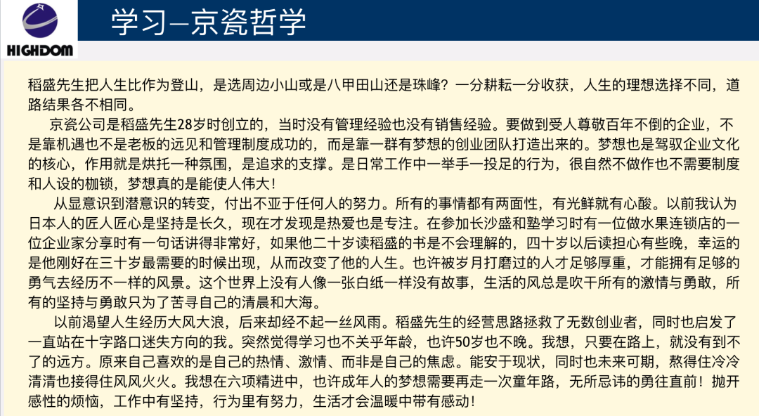 展望未来,公司的管理方式要向制度化、流程化、信息化、自动化、智能化、数字化迈进,打造理念与价值观一致的团队,促进人才培养与储备,持续推进阿米巴经营,为实现公司的使命与经营理念而奋斗不息,在打造富而有爱的幸福企业的同时,为人类和社会的进步与发展作出贡献。