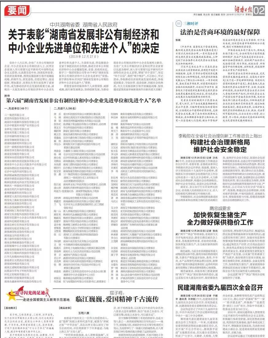 第六届“湖南省发展非公有制经济和中小企业先进单位和先进个人”名单出炉了