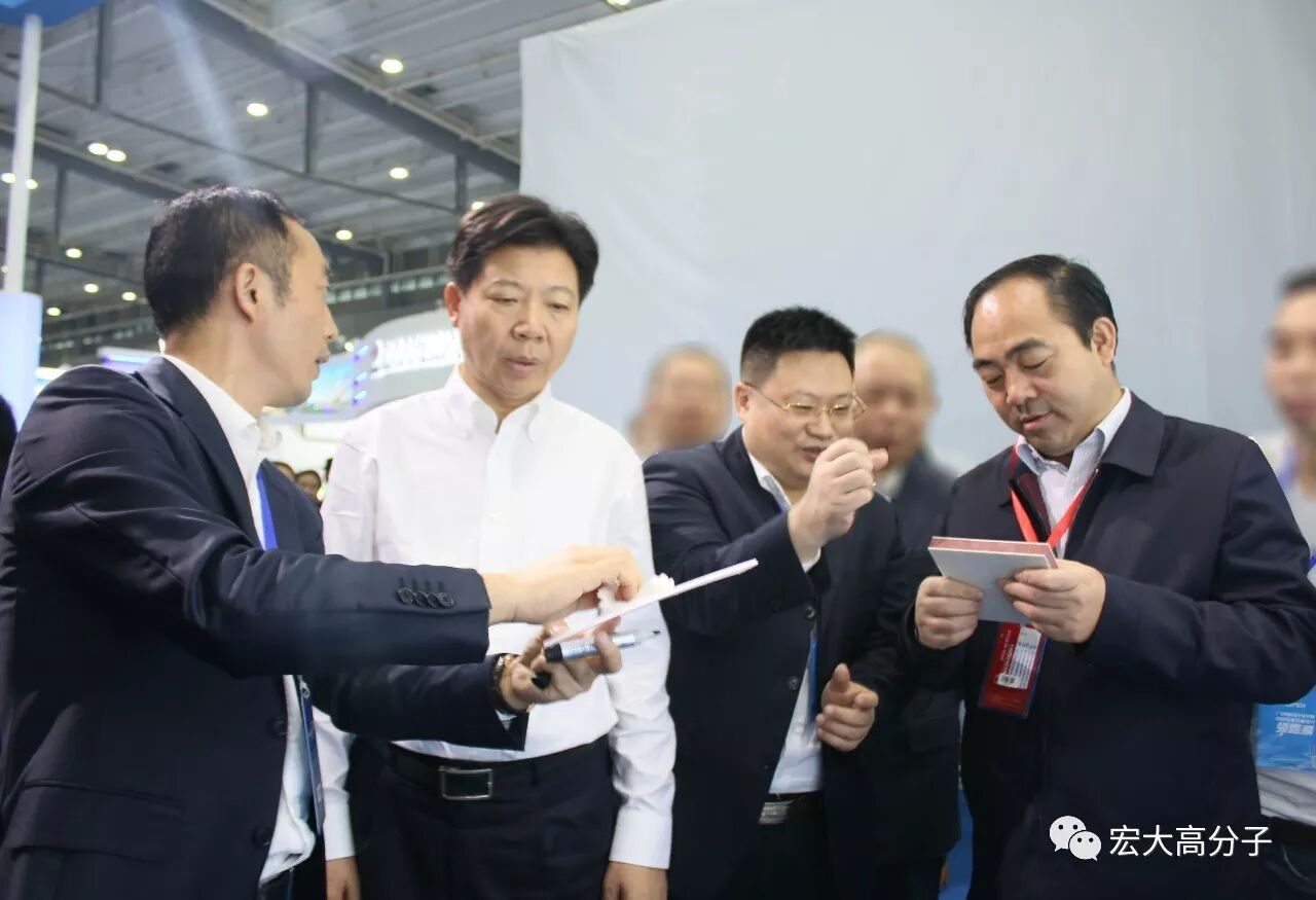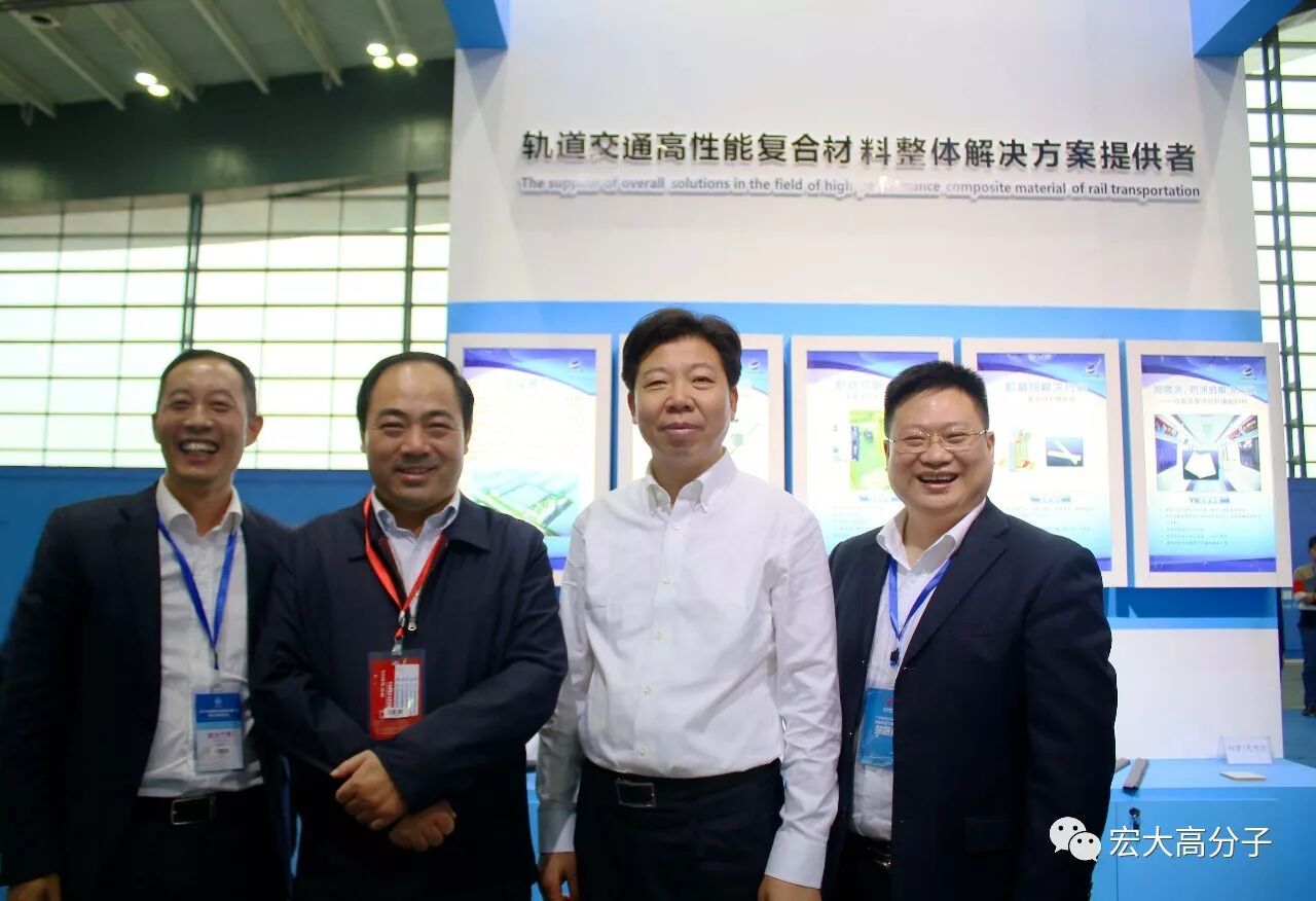 展会期间,湖南省人民政府副省长张剑飞、株洲市委书记毛腾飞、市长阳卫国、市委秘书长毛朝晖、副市长何朝晖、长沙市轨道交通集团董事长刘义山、总经理周晓明等领导莅临宏大展位现场指导!公司董事长曾维楚热情接待了来访领导和客人,并重点介绍了公司高性能复合材料的四大优势产品:1、轻量化解决方案——内装用轻质高强复合材料;2、耐疲劳解决方案——贯通道用复合材料护板体;3、耐磨损解决方案——复合磨耗材料;4、免喷涂、防涂鸦解决方案——内装用复合材料墙板材料等优势,为中国轨道交通行业提质增效、改善民生贡献一份力量。