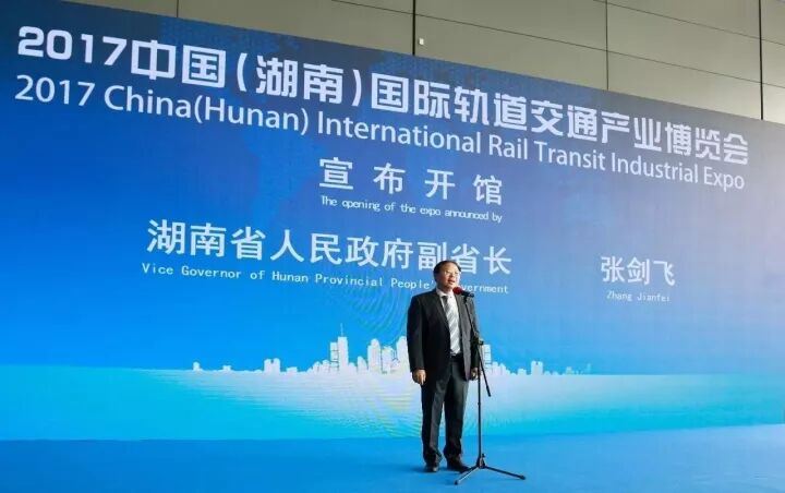 10月25日上午,2017中国(湖南)国际轨道交通产业博览会在长沙国际会展中心拉开帷幕,湖南省人民政府副省长张剑飞宣布开馆。