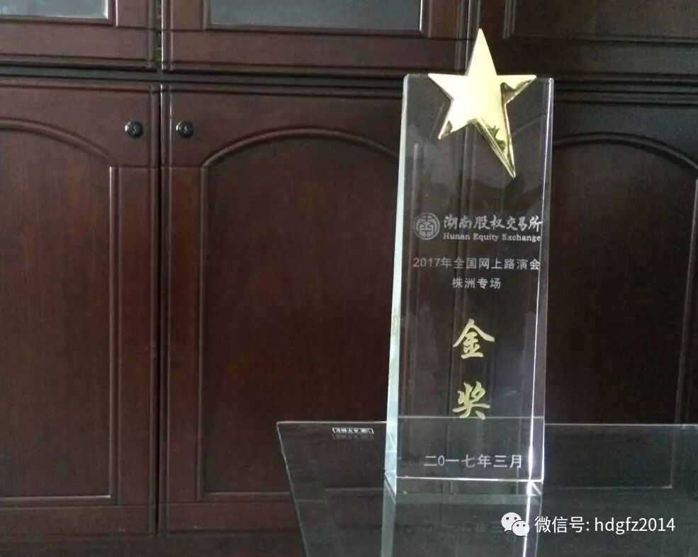 经过前期筛选,有6家企业进入当天的路演环节,宏大高分子作为当天入选企业,最终荣获湖南股权交易所“2017年全国网上路演会株洲专场金奖”,并获得11家投资机构共计1.175亿元意向投资。