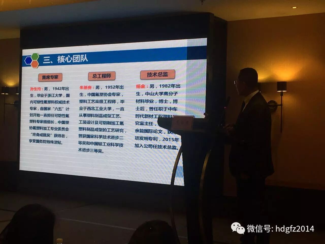 我公司主要生产可熔融氟塑料成品及精密零部件、大型脱硫制酸设备和水处理配件。公司技术总监杨金博士现场用12分钟时间,向国内知名的达晨创投、九鼎投资等100余家风投机构,以及国泰君安、中 信证券、三湘银行等10余家金融机构,介绍公司的产业发展规划。公司计划融资1500万元,用于设备增购及扩产。