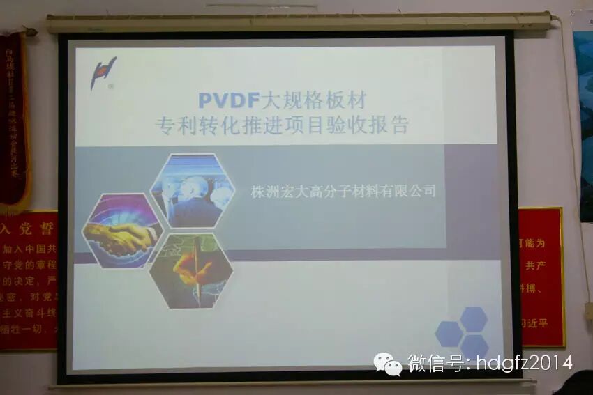 2016年2月26日,湖南省经济和信息化委员会、湖南省知识产权局,株洲市经济和信息化委员会在株洲宏大高分子材料有限公司进行由我公司承担的2015年度“百项专利转化推进计划”重点专利技术转化项目“高功能新型高分子聚偏氟乙烯(PVDF)板材”的现场验收,验收委员会听取了我司所作的汇报,审阅了有关资料,考察了生产现场。