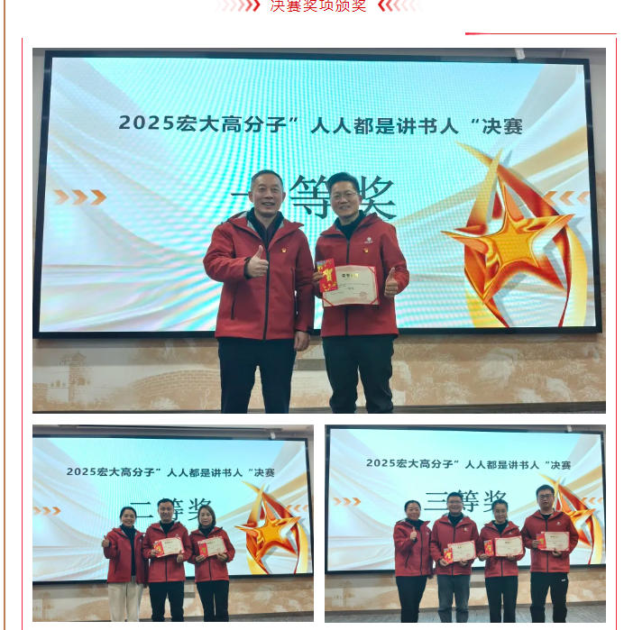 曾维楚先生、杨小英女士、金勇华女士等宏大读书堂代表为获奖选手颁奖,证书与奖励在灯光下熠熠生辉,不仅是对选手们精彩表现的嘉奖,更是对 “以书润心、以文化人” 企业理念的生动诠释。